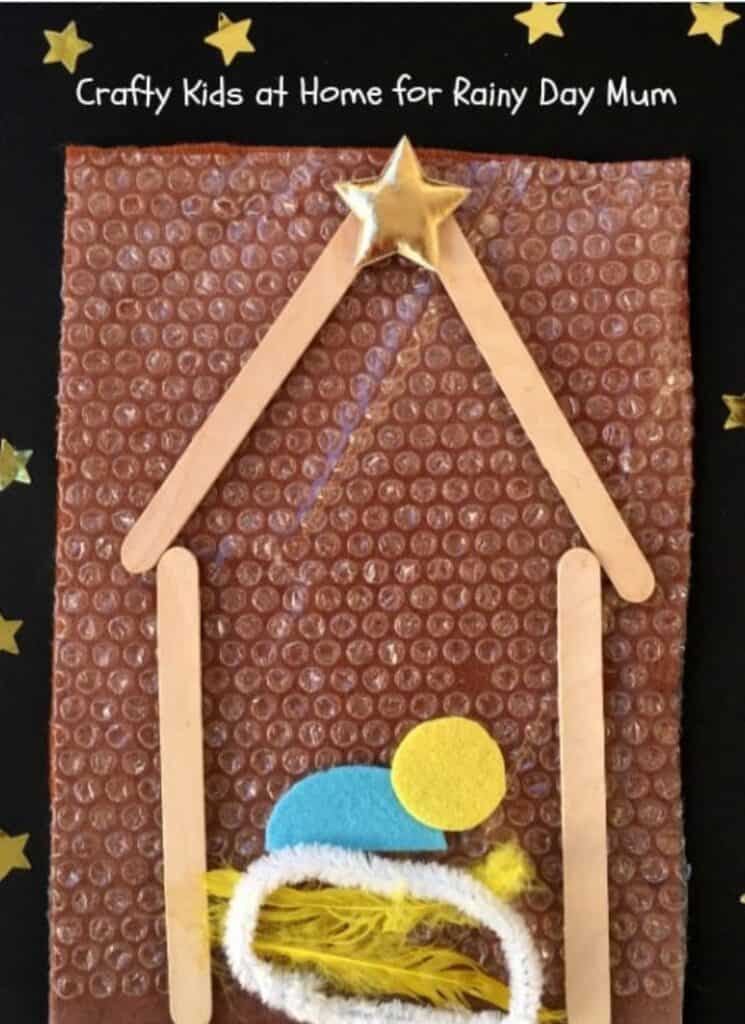 This baby Jesus craft for kids uses different materials providing a fun sensory experience. Just remember to keep some bubble wrap spare so your little ones can enjoy popping some, without damaging your finished craft!
