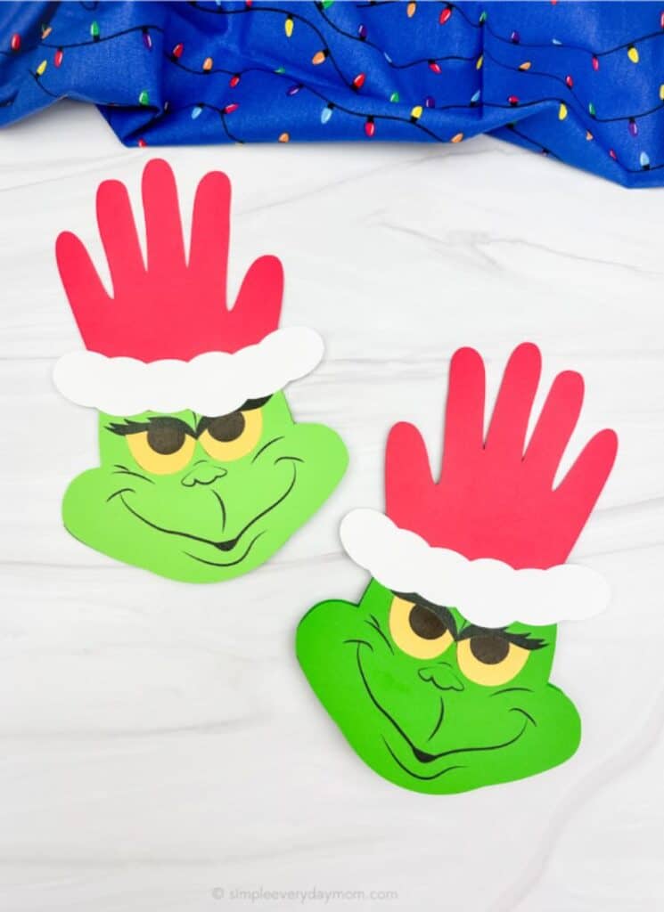 A green handprint becomes the Grinch himself! Kids will love making this playful Christmas card to share with friends or family.