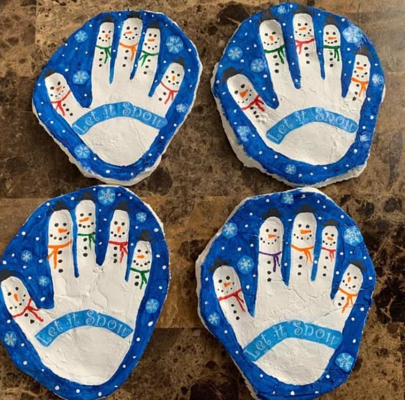 These handprint snowmen use salt dough to create a keepsake you’ll treasure forever! Kids will love painting and decorating these, although you may need to give toddlers and preschoolers a helping hand.