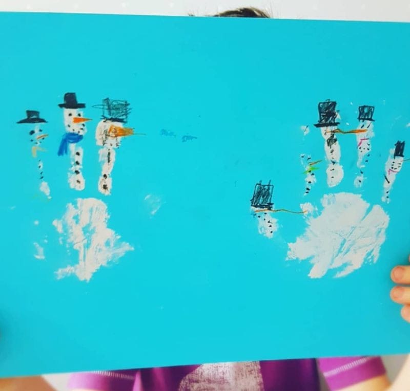 Snowmen handprint Christmas craft or card from nauczycielka_zabawy