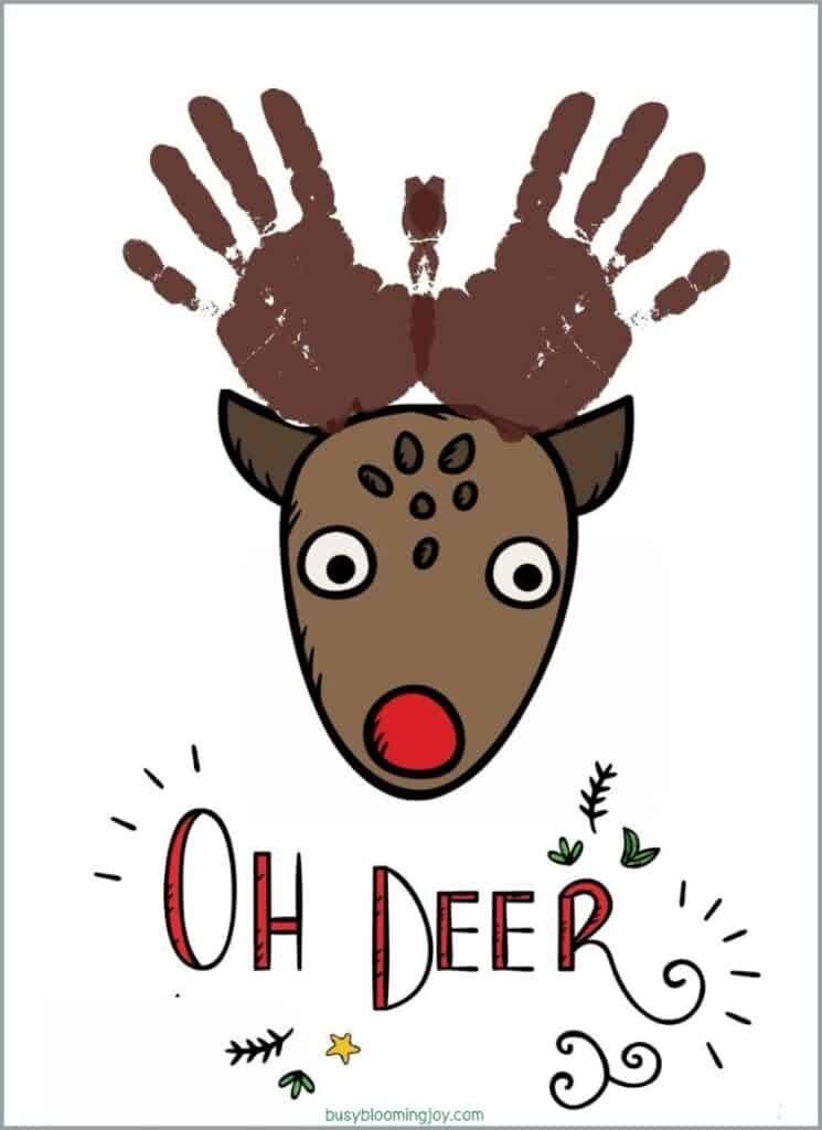 This cute reindeer has handprints for antlers and lots of charm. A fun way to capture tiny hands during the holiday season.